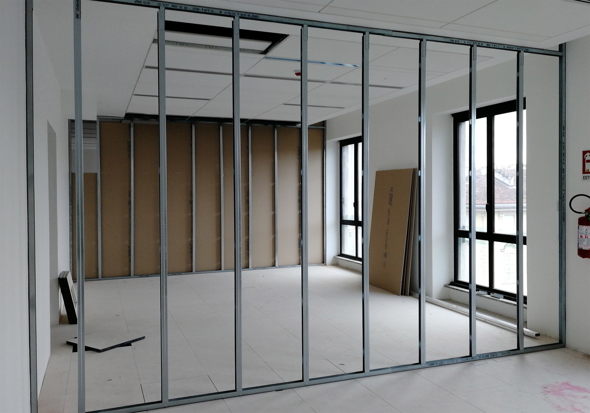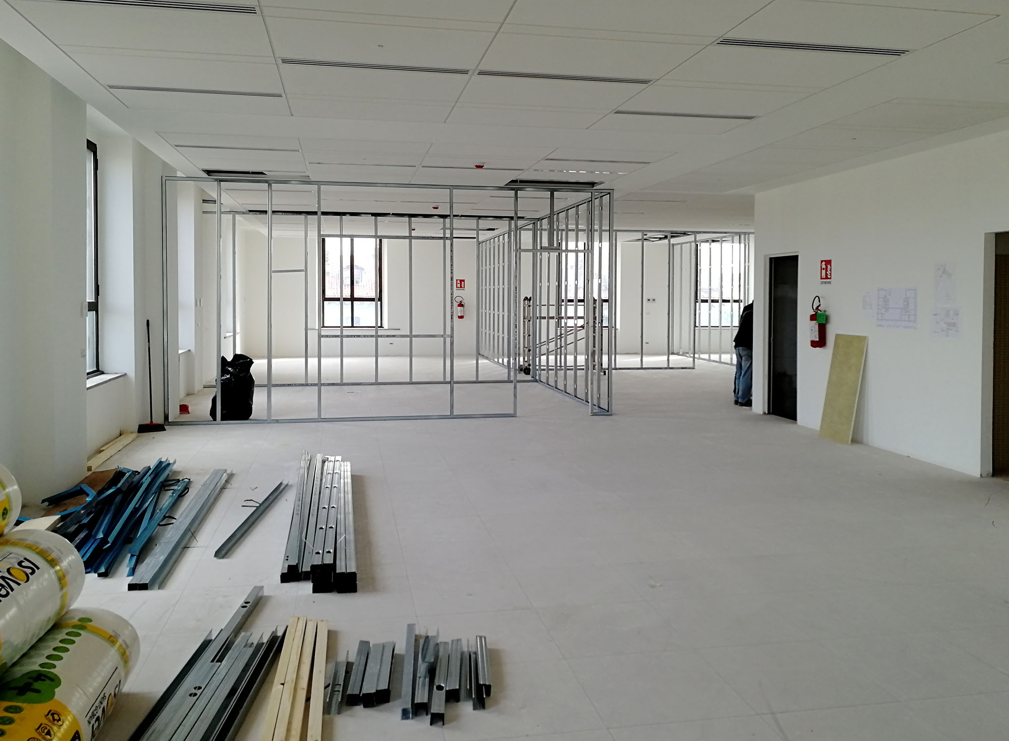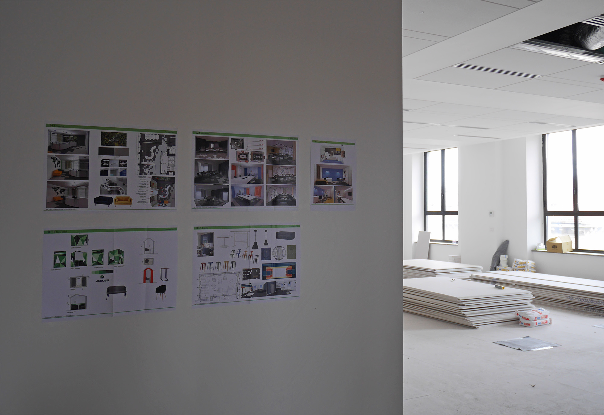 Per allestire i nuovi uffici della società Across, ci siamo trovati ad intervenire su un intero piano di un edificio in fase di completa ristrutturazione, prefinito e privo di divisioni murarie interne.